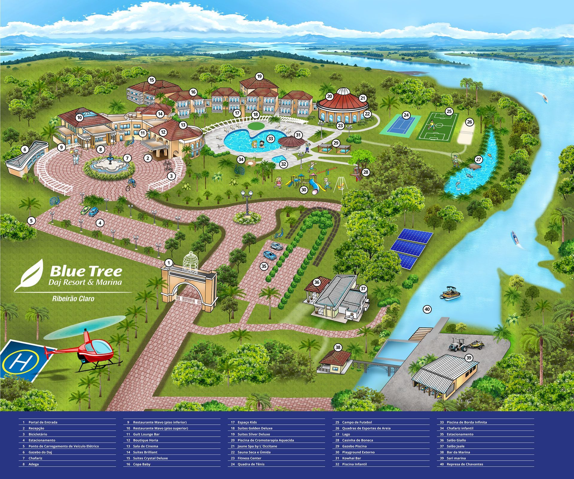 A seguir, o mapa completo das áreas comuns do Blue Tree Daj Resort & Marina — um convite para explorar cada espaço e aproveitar ao máximo tudo o que o DAJ tem a oferecer.